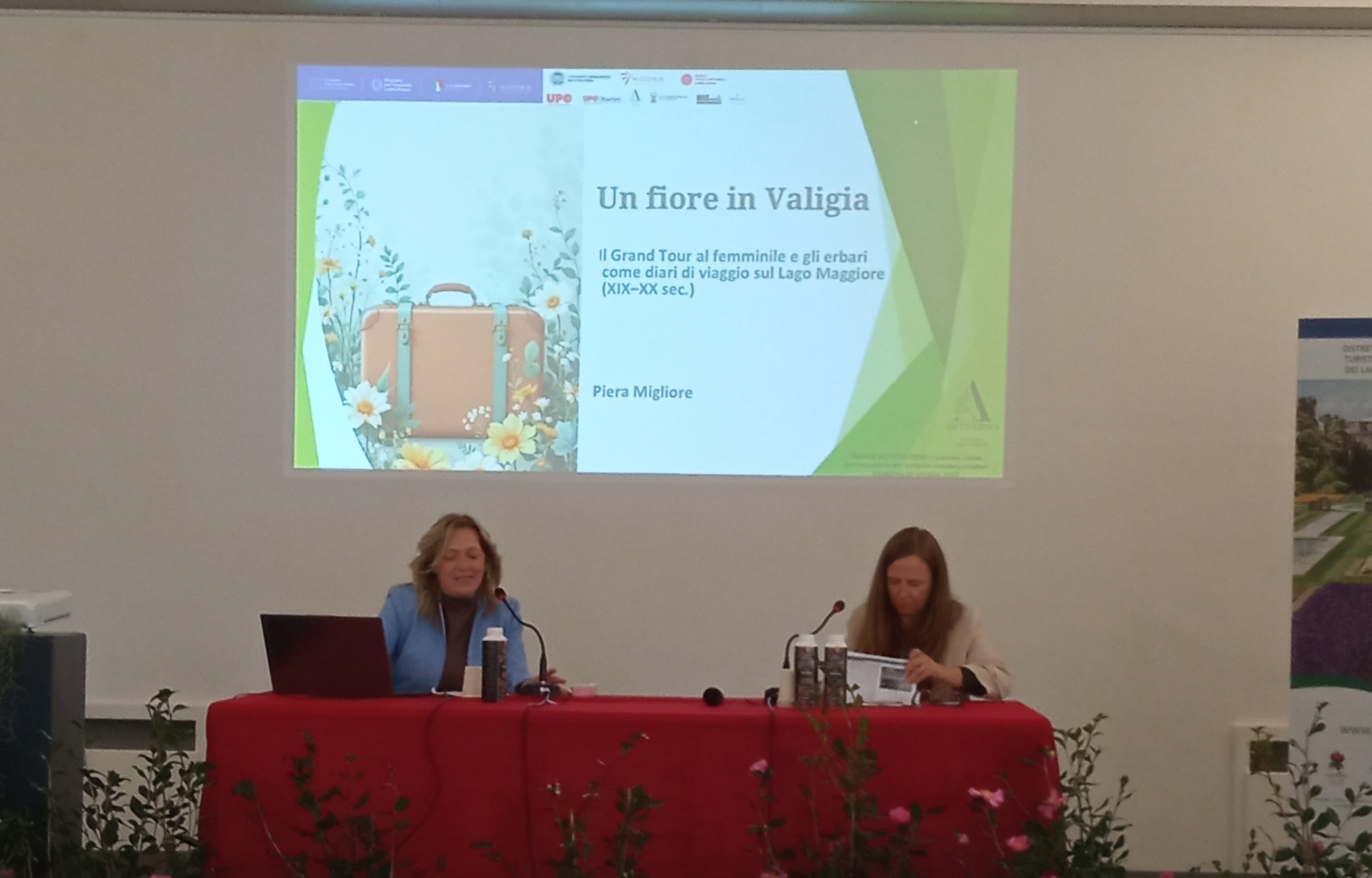 Piera Migliore, il suo intervento “Un Fiore in Valigia” , ha raccontato il Lago Maggiore dell’800, come luogo di esperienze femminili di viaggio, in cui i giardini e i paesaggi si trasformavano in erbari e diari di emozioni e conoscenze botaniche acquisite. Viaggi e modi di costruire identità culturali.